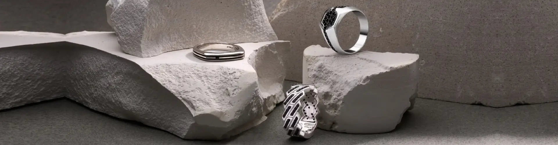 Black Silicone & Silver Bracelet with 18K Rose Gold Inserts