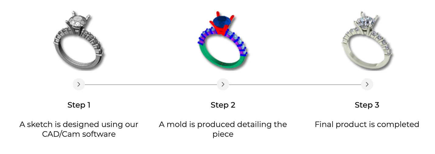 Over the years, we have developed our jewellery design and manufacturing skills, enabling us to customize your creations using CAD/Cam technology according to your specifications.Â